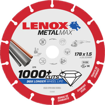 LENOX METALMAX? er et nyt alternativ til almindelige skæreskiver. Dets banebrydende diamant-teknologi præsterer en ekstrem holdbarhed og gør det lettere for dig at maksimere din arbejdseffektivitet og reducere omkostningerne på metalskærejobs. LENOX METALMAX? anbefales til mange forskellige typer metal, bl.a. stål, plademetal, rustfrit stål, armeringsjern, støbejern, aluminium og ikke-jernholdigt metal.