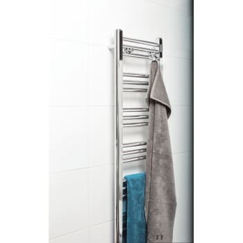 Håndklædetørrer Bas inkl beslag til montage, skruer og plugs. Kan tilsluttes enten elektrisk, til vandbårent lukket system eller som en kombination. Fås i hvid, granit grå eller krom.